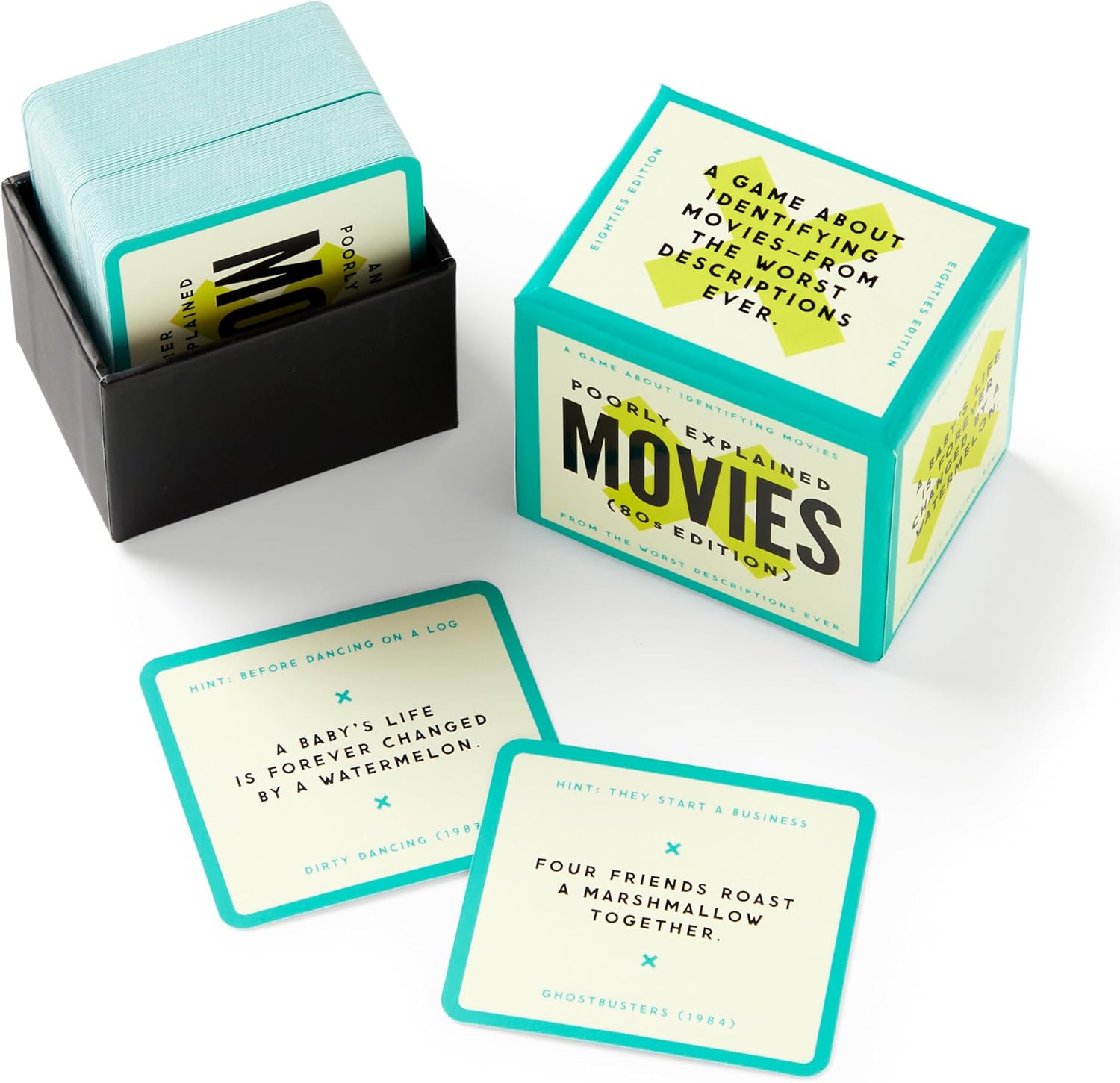 - PERFECT PARTY GAME - Bring the Mini Poorly Explained Movies - 80s Edition to your next party and watch it be a guaranteed hit! You really think your friends know 80s movies from extremely bad summaries? Play the game and find out! It's a game that will give you a night of hilarious conversations and unforgettable memories. Get ready to have everyone at the party in stitches as they try to guess in which movie do four friends roast a marshmallow together (hint: they start a business)!
