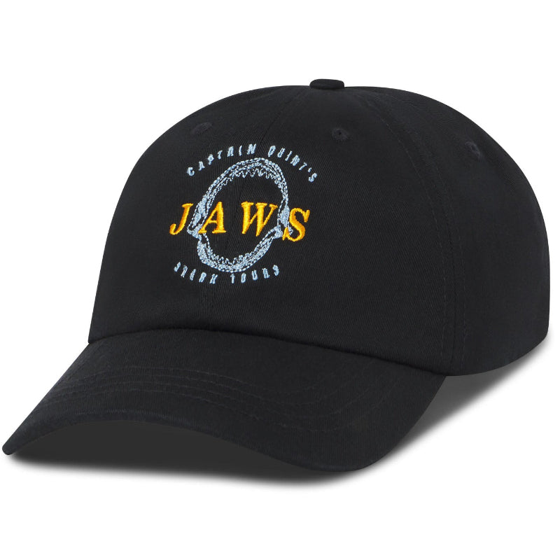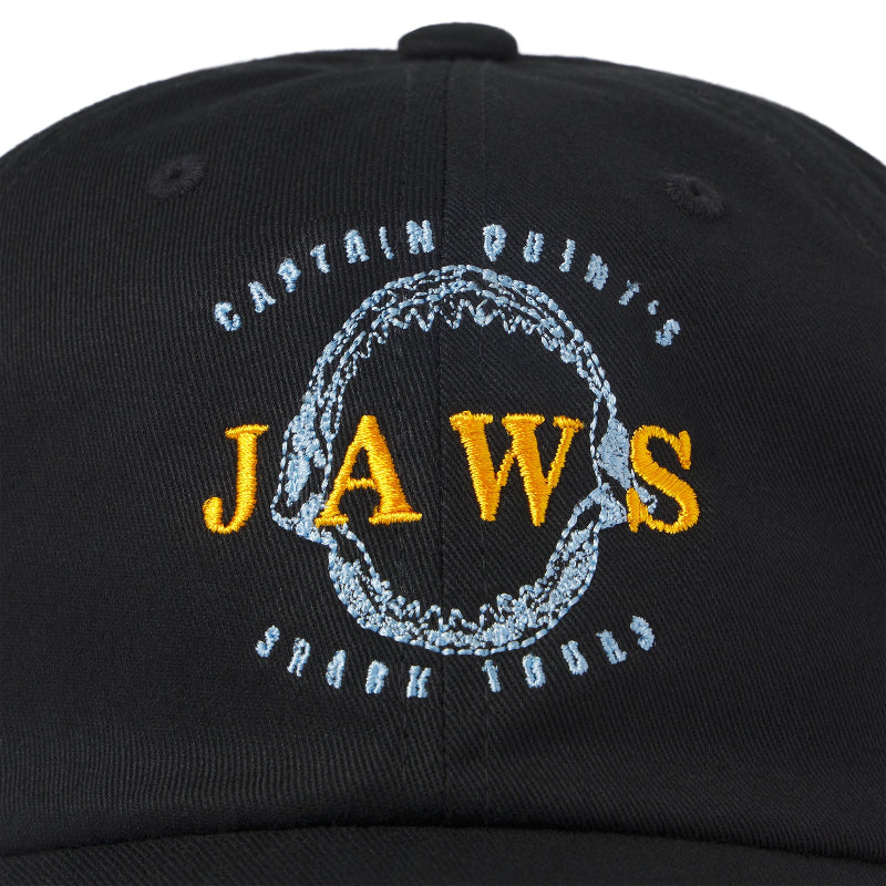 Celebrate the 50th anniversary of the movie that made you afraid to go in the water with this iconic JAWS CAPTAIN QUINT DAD CAP. Iconic and nostalgic, this JAWS cap pays tribute to the legendary Captain Quint and the classic film that spawned generations of shark-obsessed fans. Whether you're a lifelong JAWS devotee or discovering the movie for the first time, this exclusive cap from the Academy Museum is a must-have for any true cinephile.