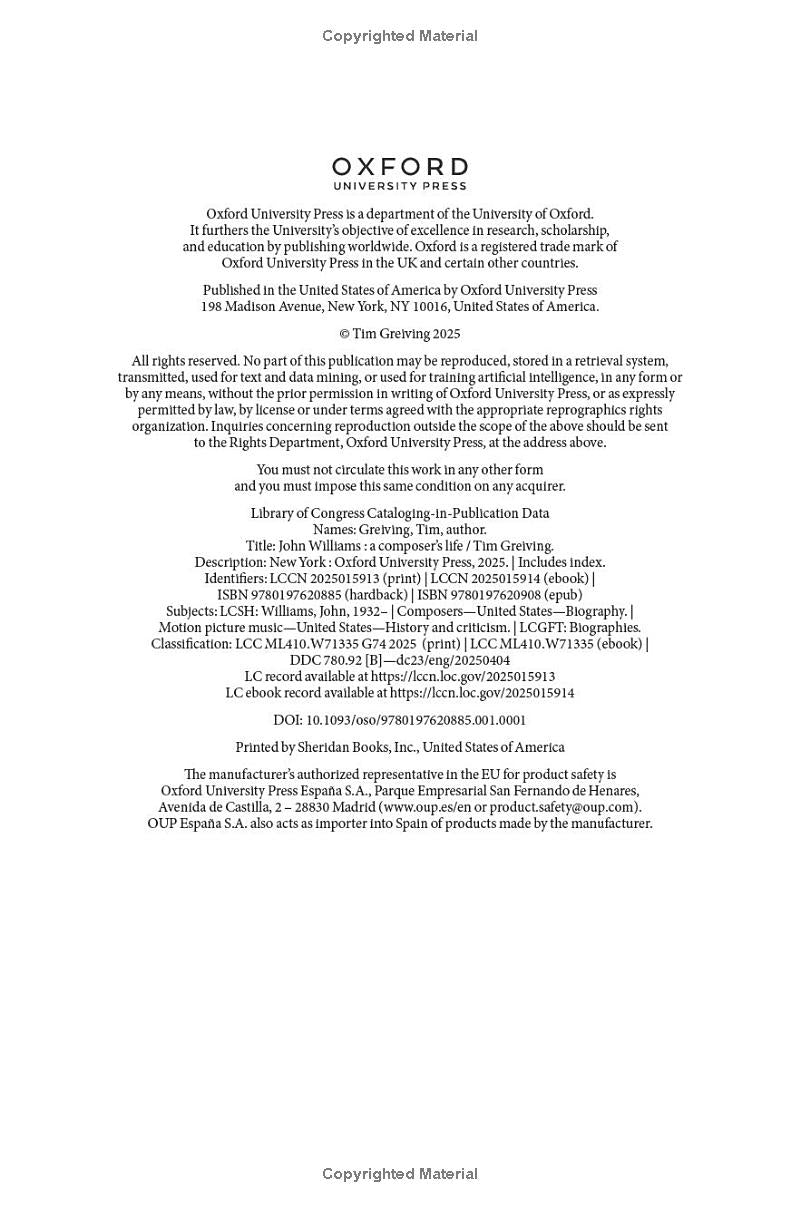 John Williams: A Composer's Life Hardcover – September 2, 2025 by Tim Greiving (Author) The first biography of a great American composer of the cinema age. John Williams is one of the most important film composers of all time, having almost singlehandedly revived the Hollywood symphonic scoring tradition and helped restore the livelihood of American orchestras through the popularity of film music programming. His film music, in the words of director Oliver Stone, "came to stand for the American culture."