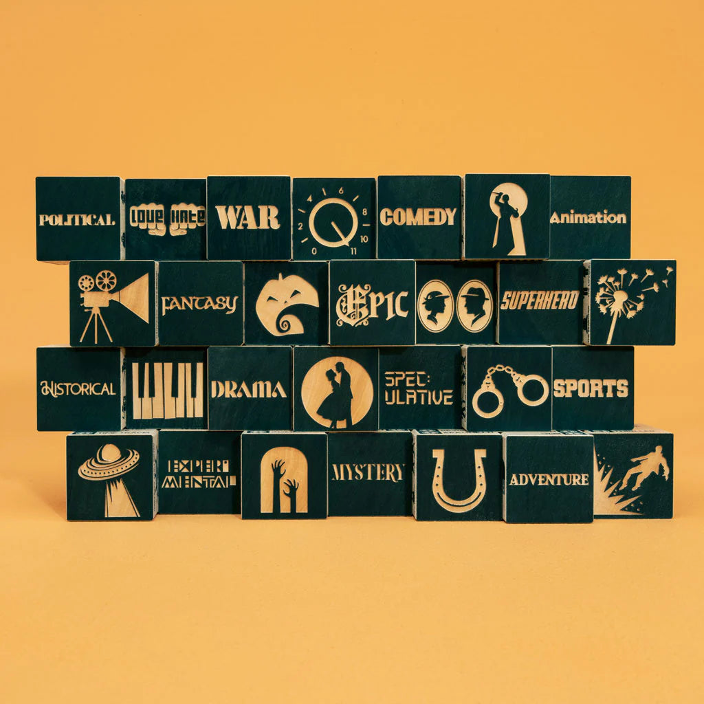 As you play with this block set, you can increase your film literacy. Discover the multiple genres and subgenres of your favorite films. See if you can guess a film’s genre from its description.