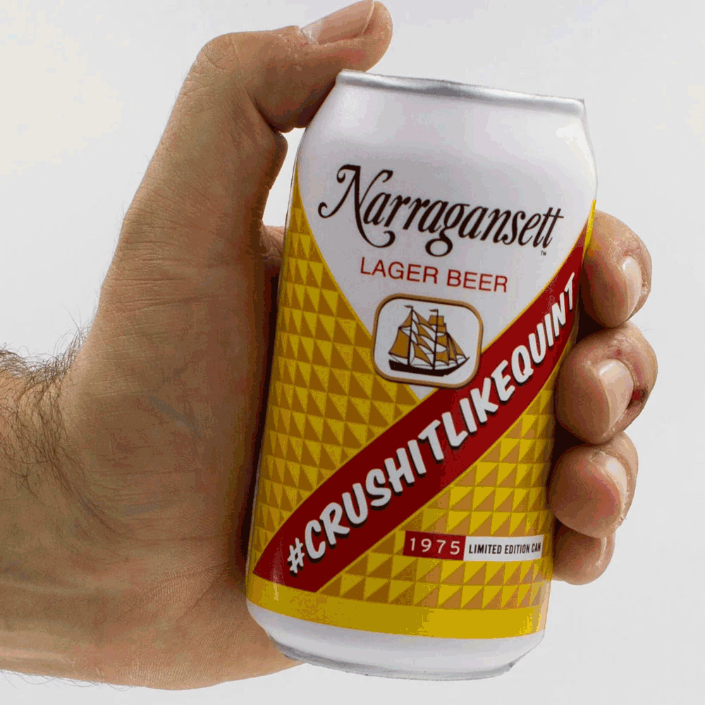 Narragansett Beer Can Crush It Like Quint Stress Can Squeeze Toy. Admit it - you're sitting at your desk at work thinking, "man, I'd really like to crush one like Quint right now." Well, we're here to say, "you're welcome". With the Crush It Like Quint stress can, you can crush it whenever you're feeling the urge. So go ahead, relieve some stress or intimidate a pesky oceanographer when you're not in reach of the real thing. Honor the man. Crush the can. Please note this is not a chew toy.