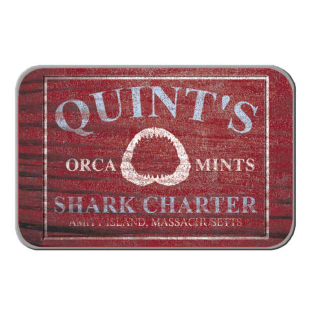 Prepare for a thrilling bite of refreshing flavor with Quint’s Mints in a Collectible Tin, an absolute catch for any Jaws aficionado! Inspired by the legendary shark hunter himself, this eye-catching tin features a bold shark jaw design.